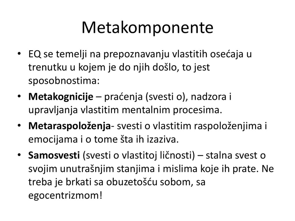• 8. Definicije metaspoznaje, metaraspoloženja i samosvesti.