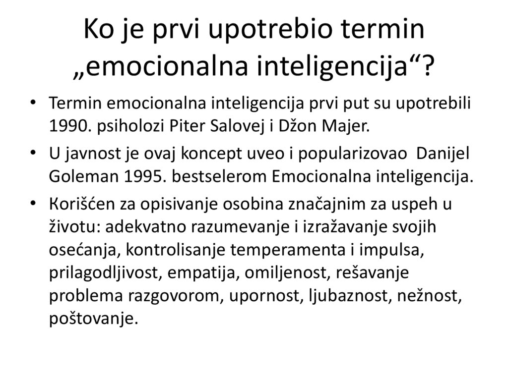• Termin emocionalna inteligencija prvi put su upotrebili