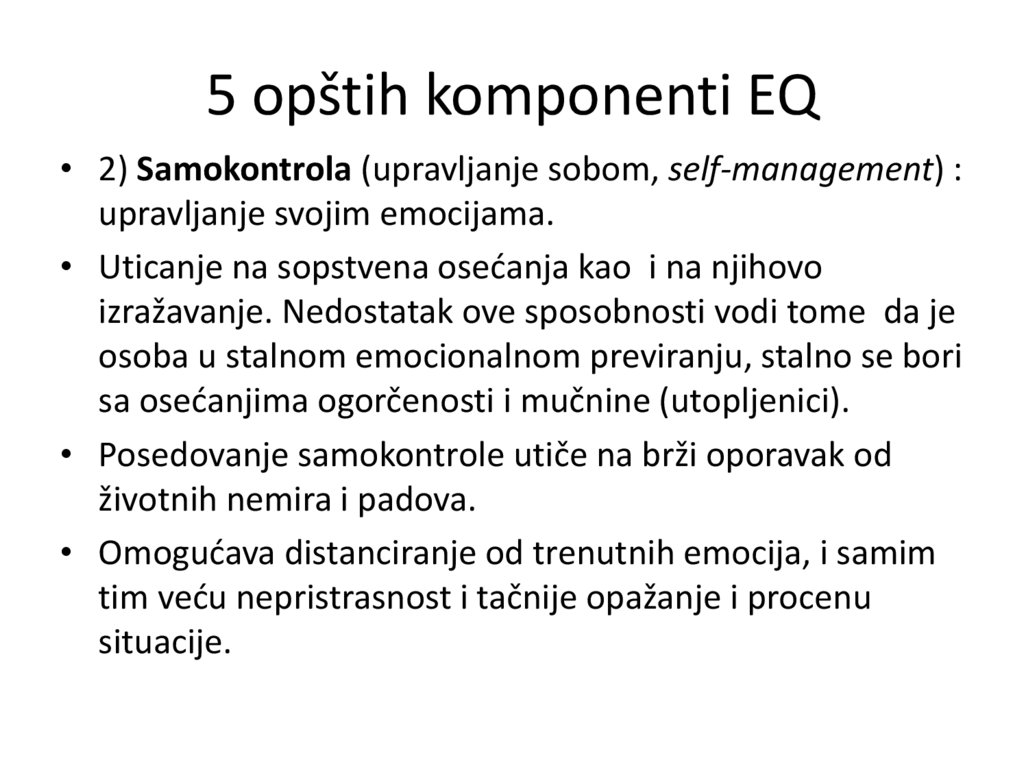 • 20. Navedite pet komponenti emocionalne inteligencije