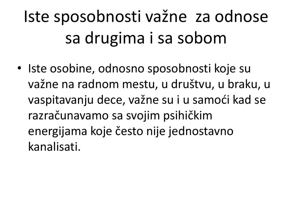 Iste sposobnosti važne za odnosesa drugima i sa sobom