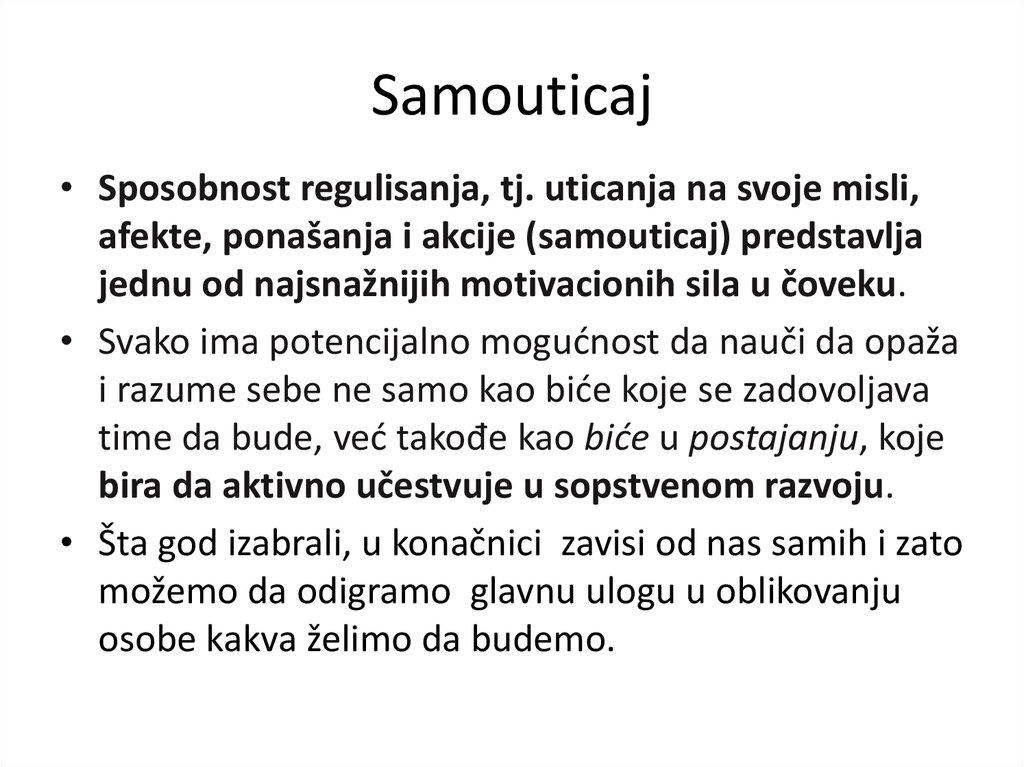 Pitanja• 14. Šta znači pojam „samouticaj“?