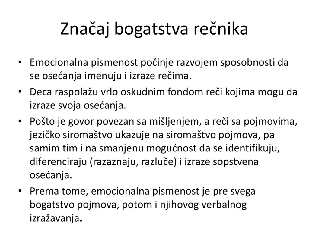 • Pošto im nedostaju reči kojima bi identifikovali osećanja,