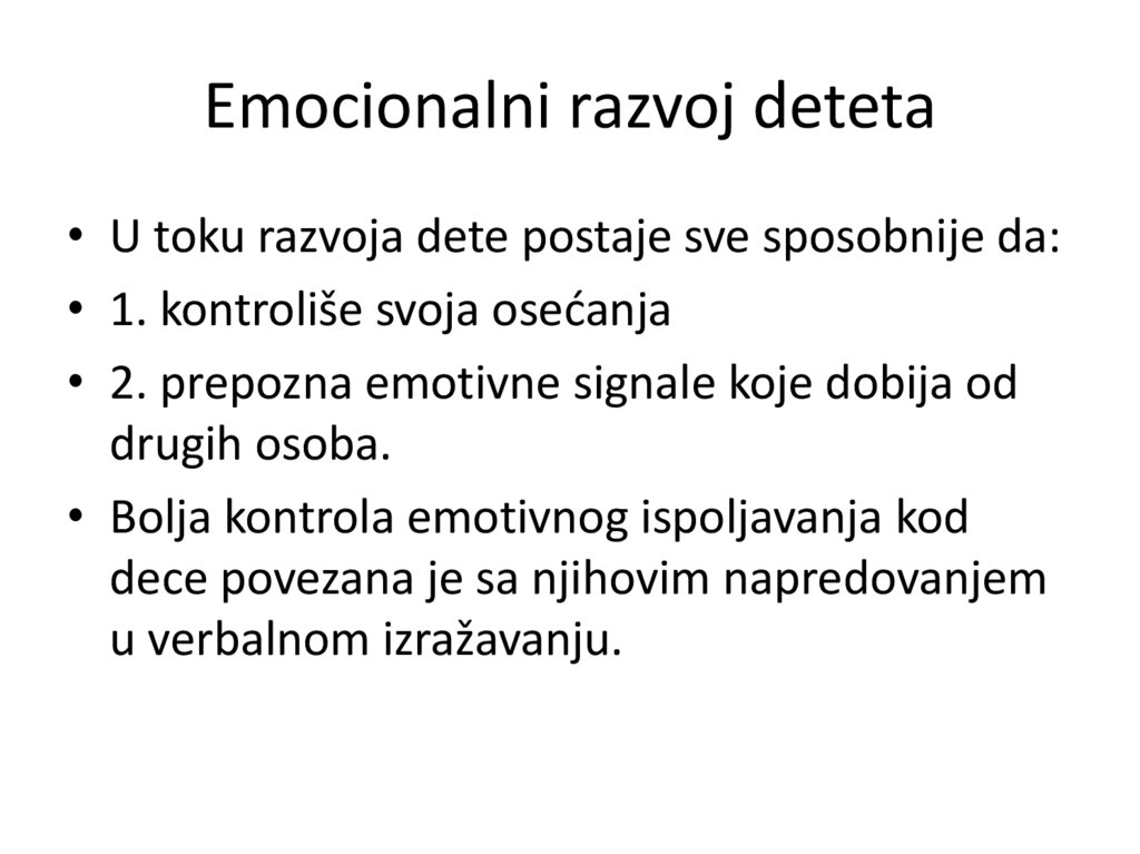 • 19. Sa čime je povezana bolja kontrola emocija kod dece?