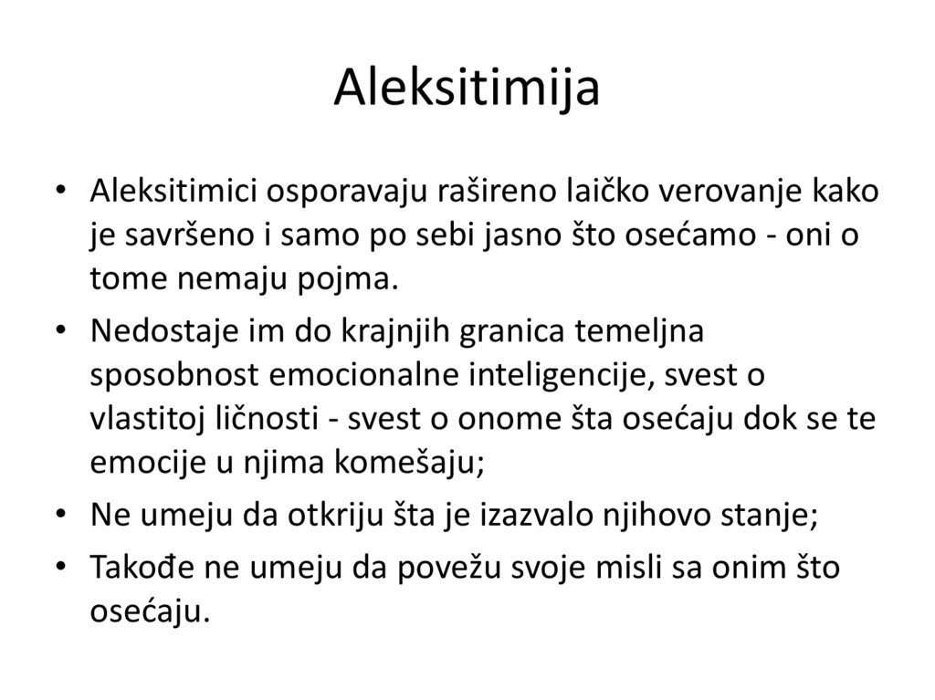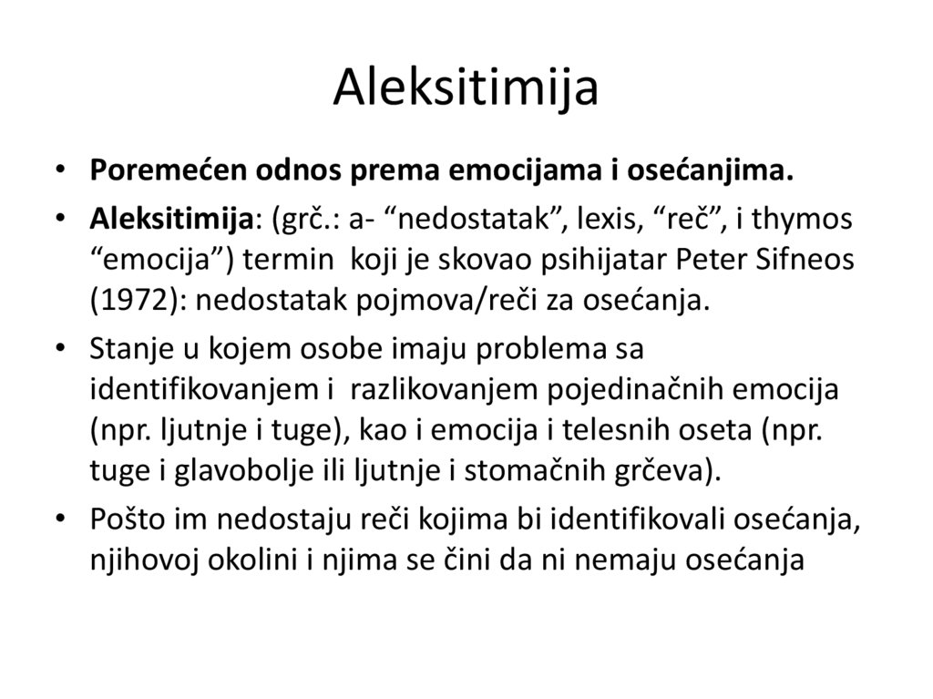 pojma? U kojoj vrsti poremećaja je prisutna aleksitimija?