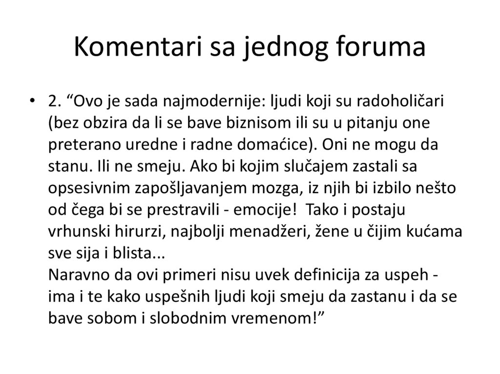 Komentari sa jednog foruma• 2. “Ovo je sada najmodernije: ljudi koji su radoholičari