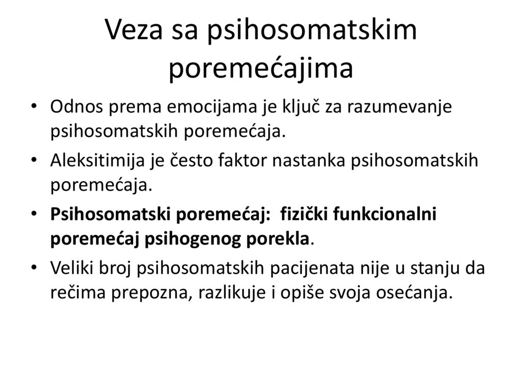 • Aleksitimija je često faktor nastanka psihosomatskih