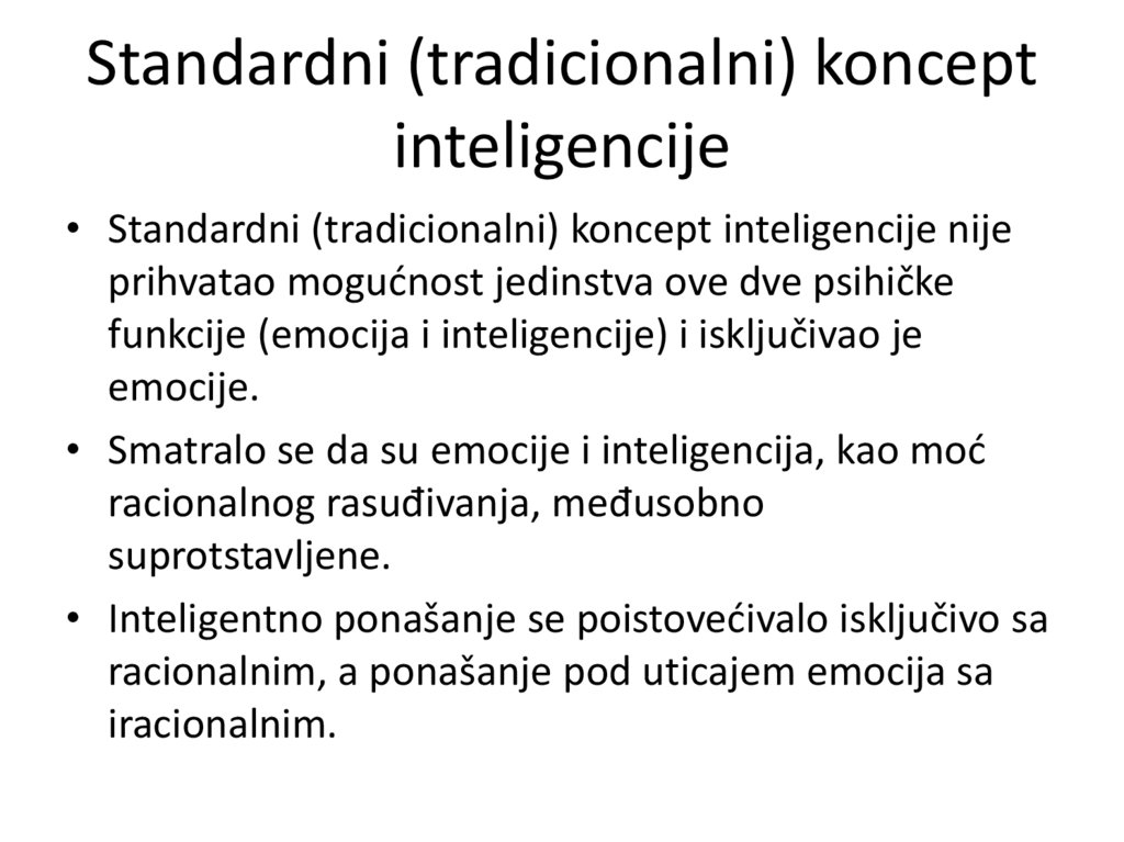 • Standardni (tradicionalni) koncept inteligencije nije