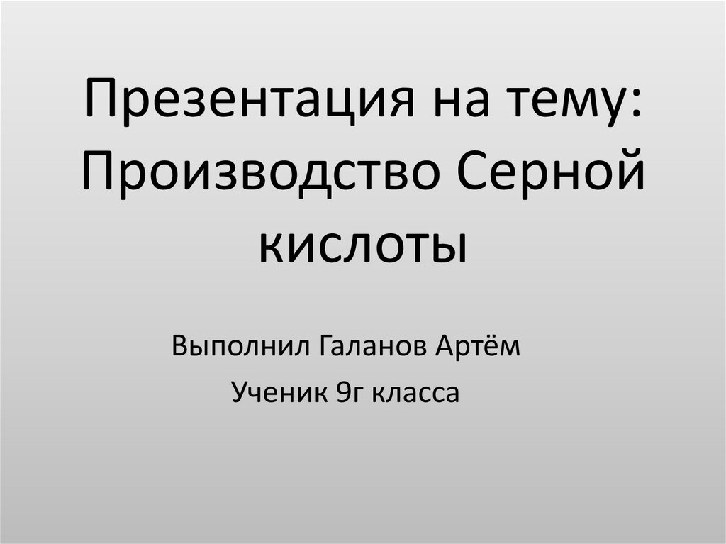 Презентация на тему: Производство Серной кислоты