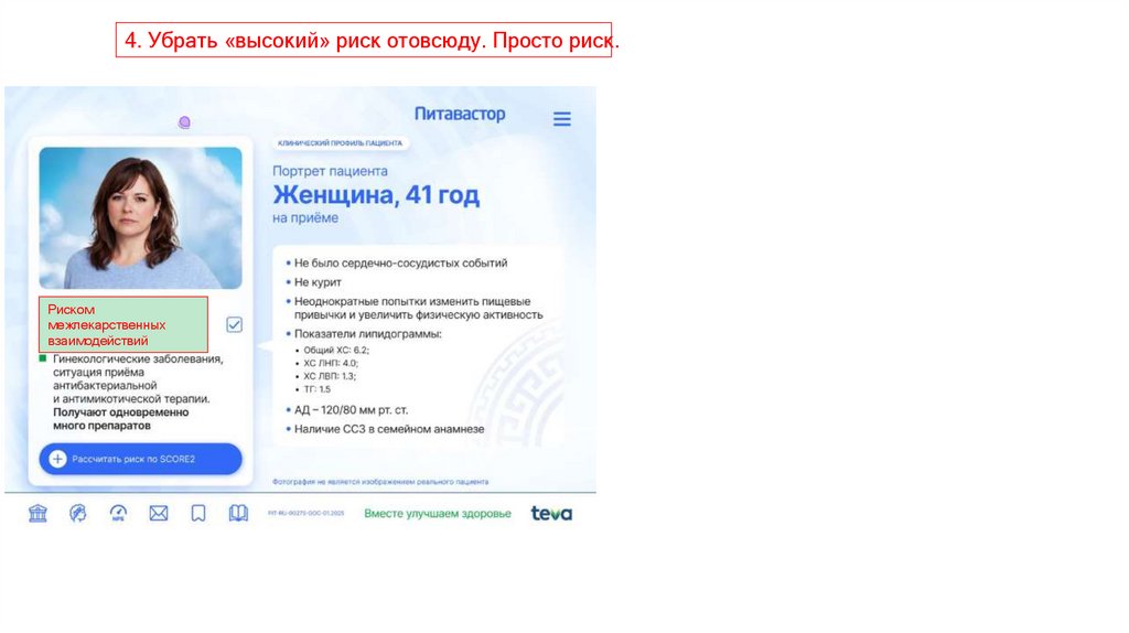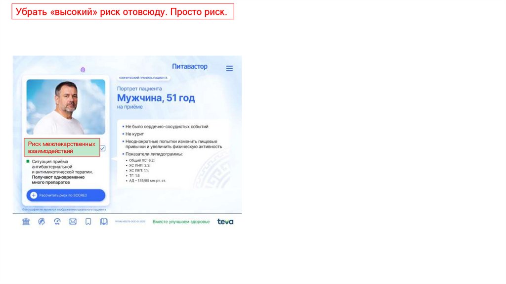 Убрать «высокий» риск отовсюду. Просто риск.Риск межлекарственных