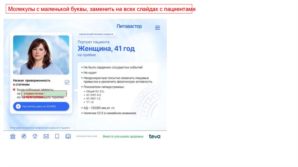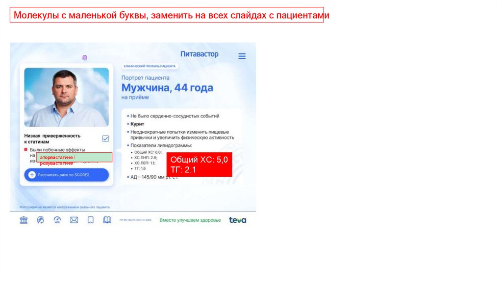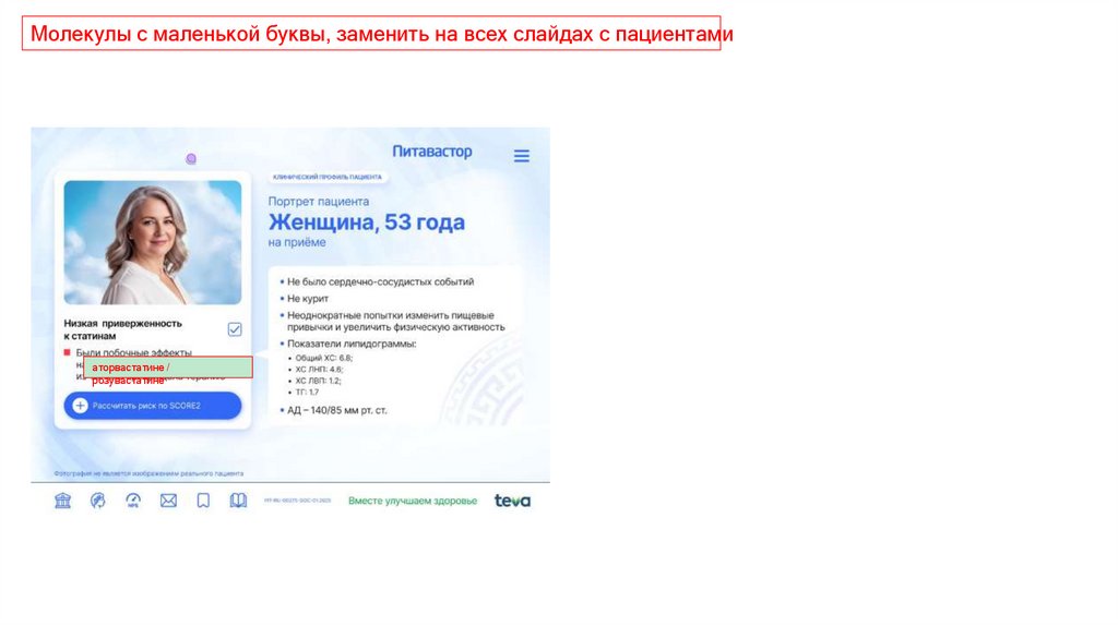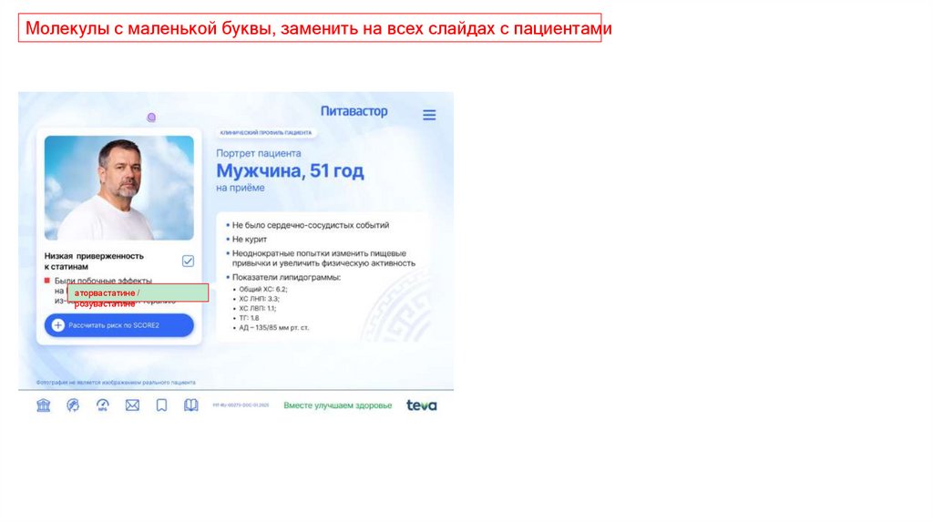 Молекулы с маленькой буквы, заменить на всех слайдах с пациентамиаторвастатине /