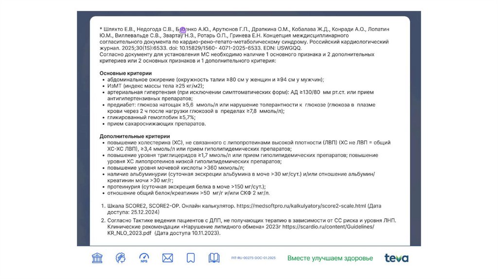 1. Клинические рекомендации «Нарушение липидного обмена» 2023г https://scardio.ru/content/Guidelines/K
