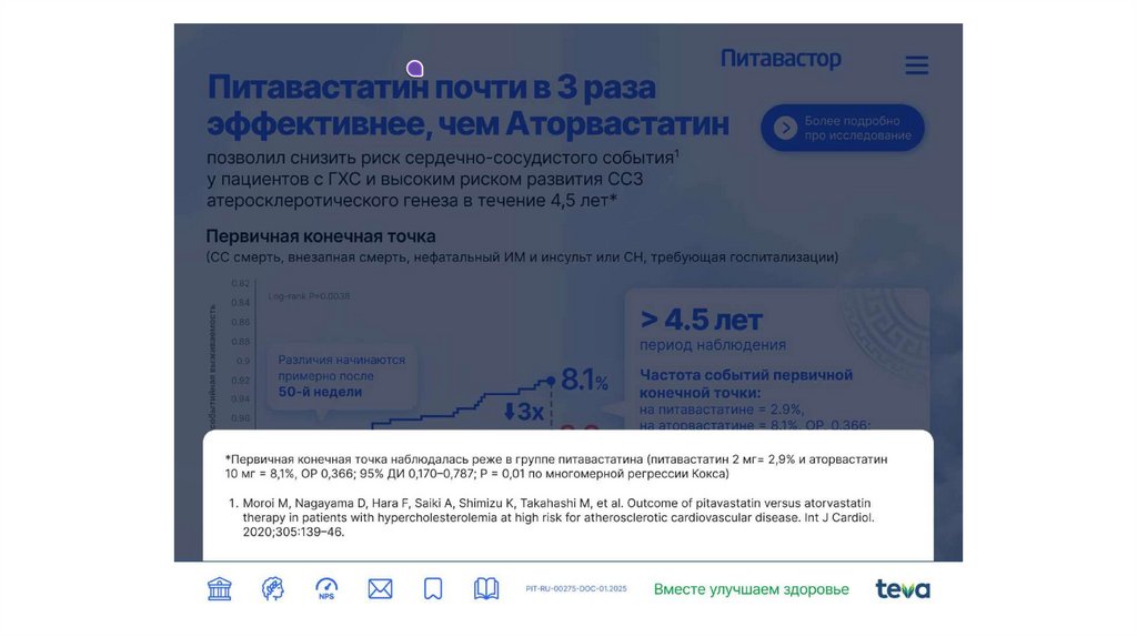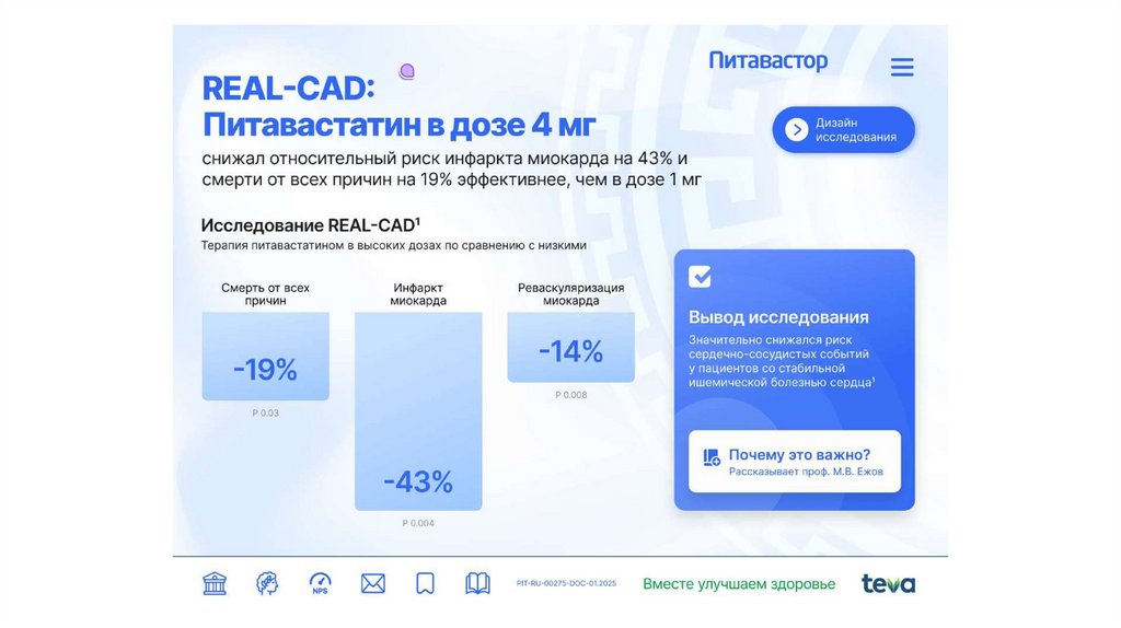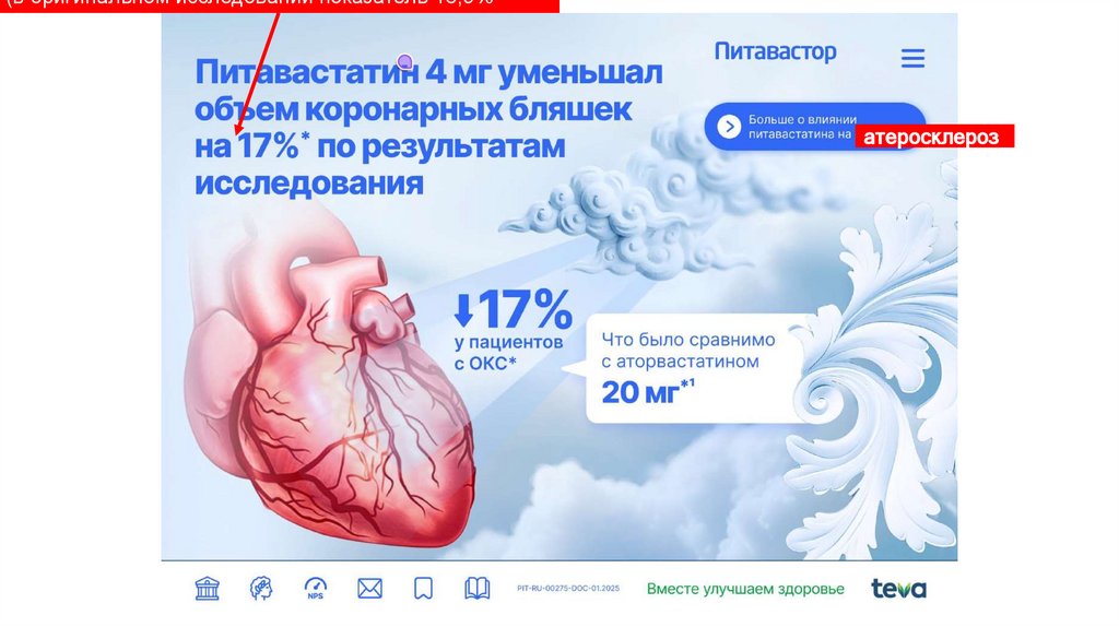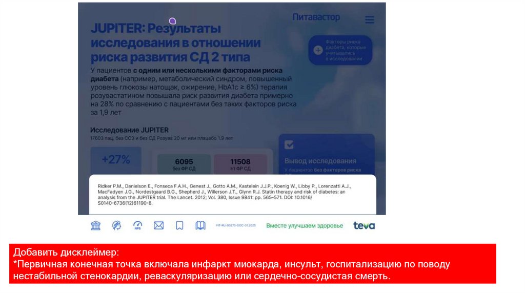 Добавить дисклеймер:*Первичная конечная точка включала инфаркт миокарда, инсульт, госпитализацию по поводу