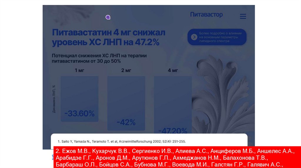 2. Ежов М.В., Кухарчук В.В., Сергиенко И.В., Алиева А.С., Анциферов М.Б., Аншелес А.А.,Арабидзе Г.Г., Аронов Д.М., Арутюнов Г.П., Ахмеджанов Н.М., Балахонова Т.В.,