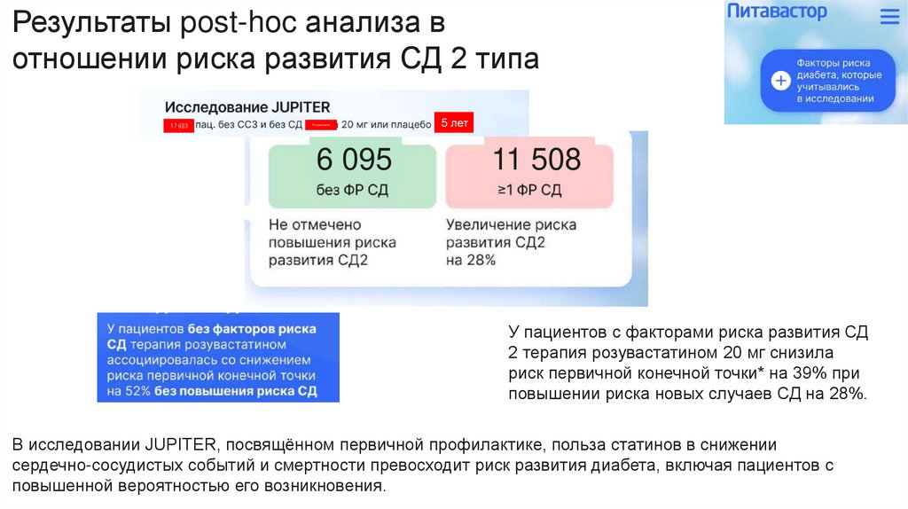 сердечно-сосудистых событий и смертности превосходит риск развития диабета, включая пациентов с