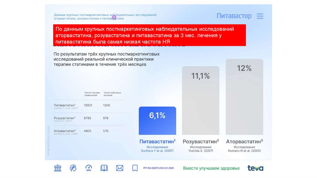 По данным крупных постмаркетинговых наблюдательных исследованийаторвастатина, розувастатина и питавастатина за 3 мес. лечения у