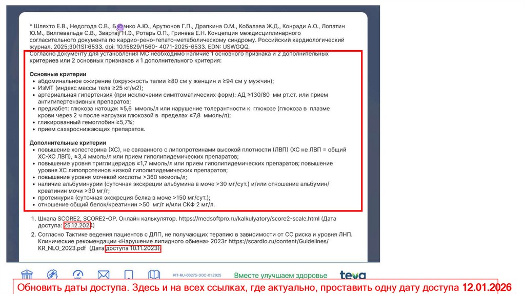 Обновить даты доступа. Здесь и на всех ссылках, где актуально, проставить одну дату доступа 12.01.20269.