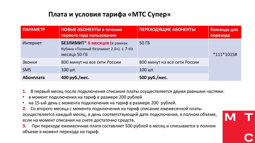 «МТС Больше» «МТС Супер»2.