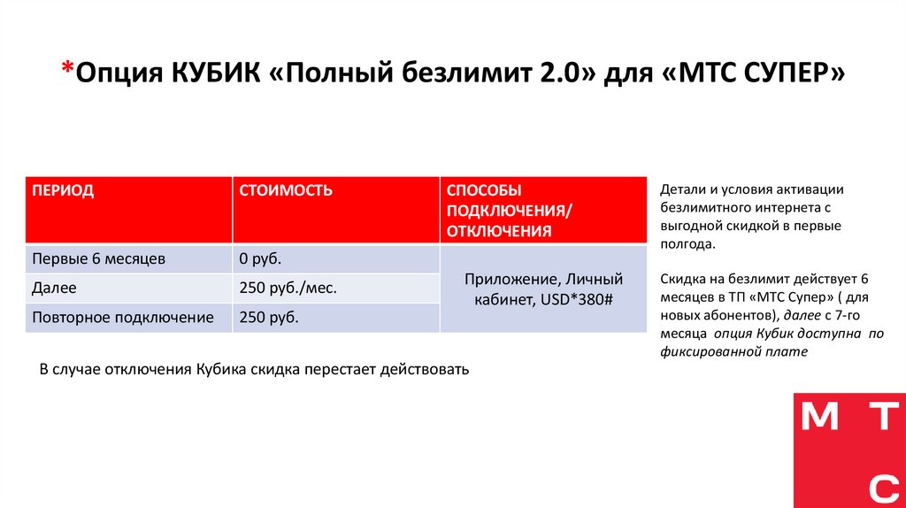 *Опция КУБИК «Полный безлимит 2.0» для «МТС СУПЕР»ПЕРИОД