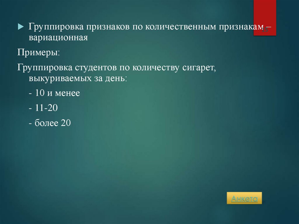 ответов (группировка признаков)