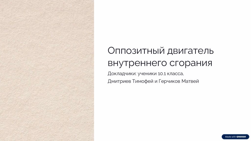 Оппозитный двигательвнутреннего сгорания