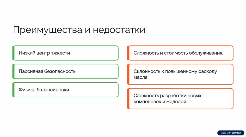 Преимущества и недостаткиНизкий центр тяжести
