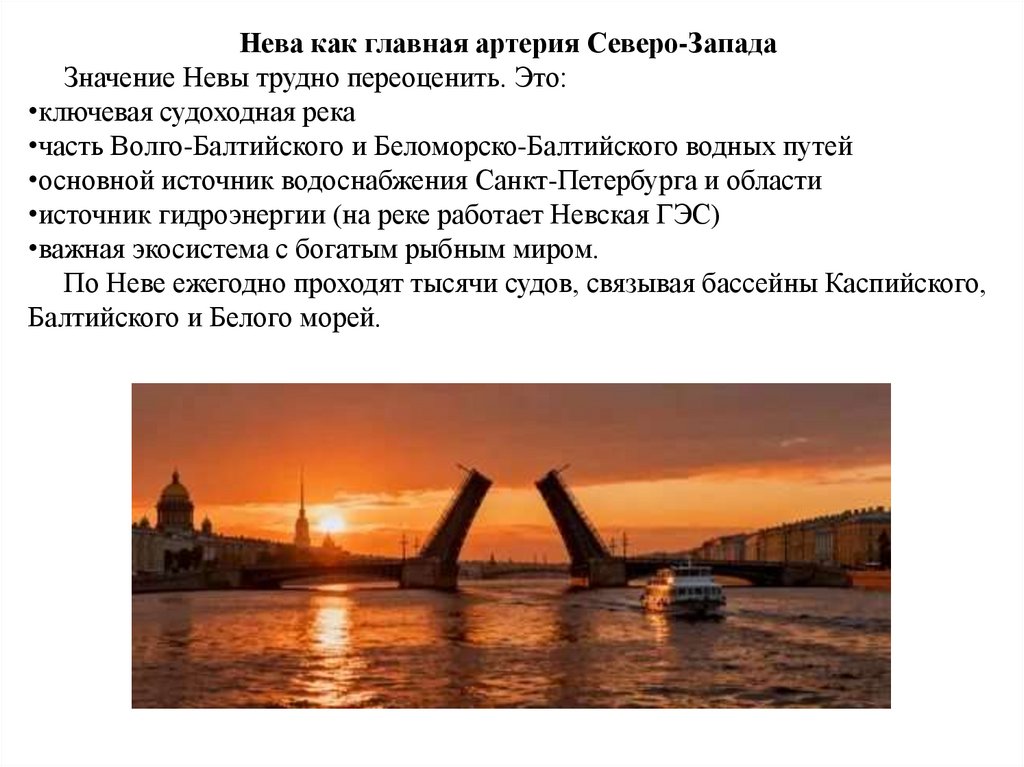 Нева как главная артерия Северо-ЗападаЗначение Невы трудно переоценить. Это: