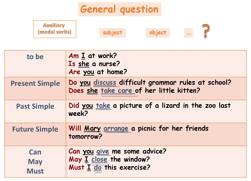 General questionGeneral question is put to the general meaning of the sentence and begins
