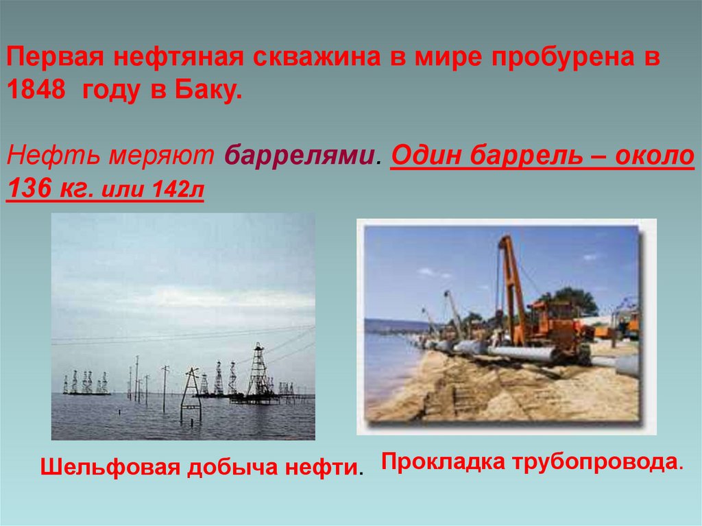 Первая нефтяная скважина в мире пробурена в1848 году в Баку.