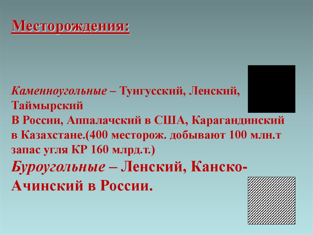 Буроугольные – Ленский, КанскоАчинский в России.