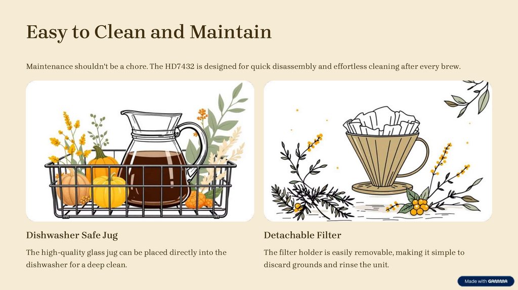 Easy to Clean and MaintainMaintenance shouldn't be a chore. The HD7432 is designed for quick disassembly and effortless cleaning after every brew.
