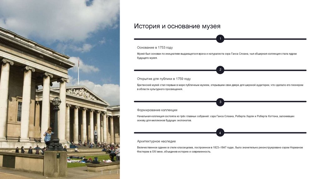 Британский музей стал первым в мире публичным музеем, открывшим свои двери для широкой аудитории, что сделало его пионером