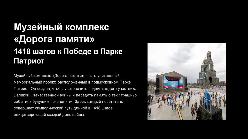 Музейный комплекс «Дорога памяти»1418 шагов к Победе в Парке Патриот