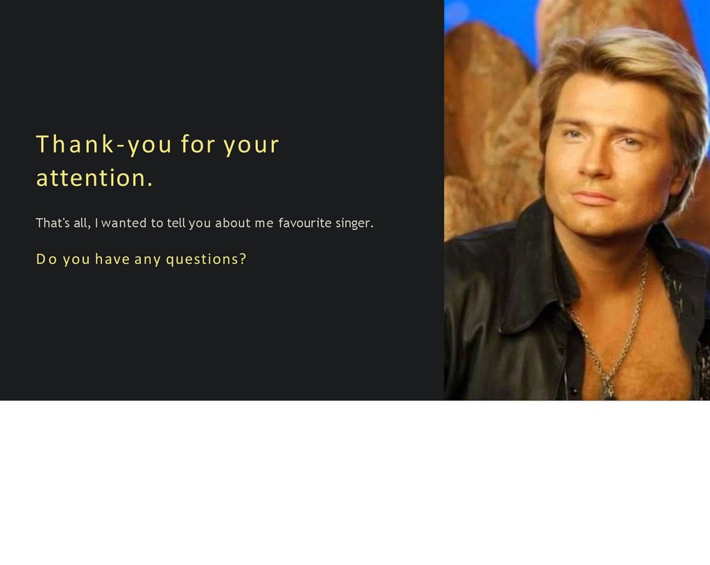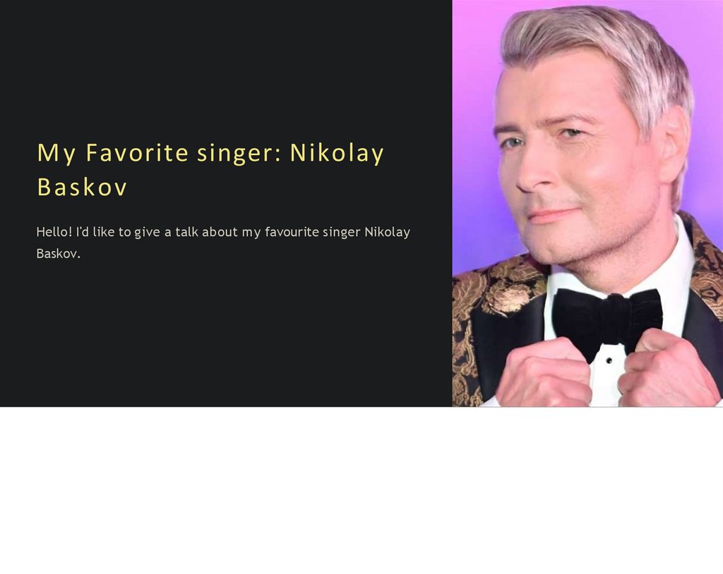 Hello! I'd like to give a talk about my favourite singer Nikolay