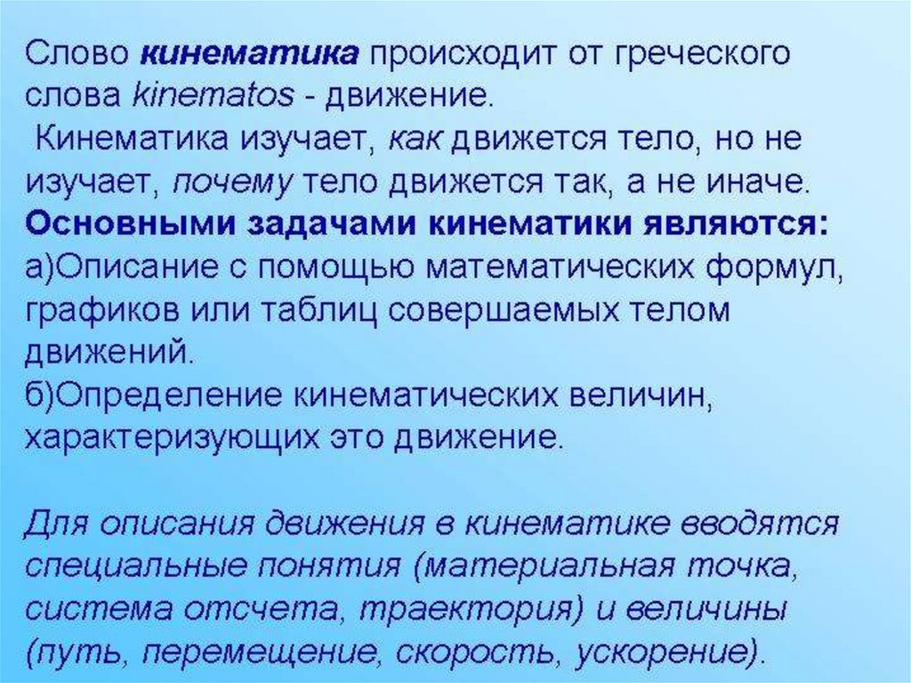 Механика — часть физики, которая изучает закономерностимеханического движения и причины, вызывающие или