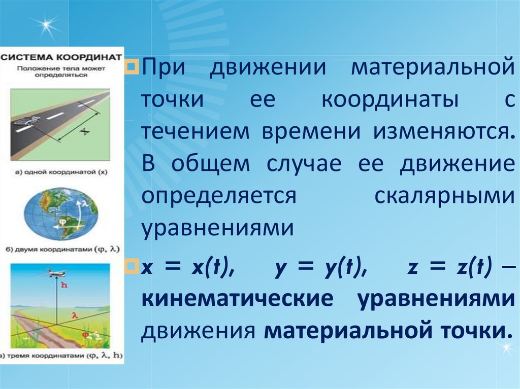 9. Траектория – линия, описываемая в пространстве движущейся точкой. В зависимости от формы траектории движение бывает