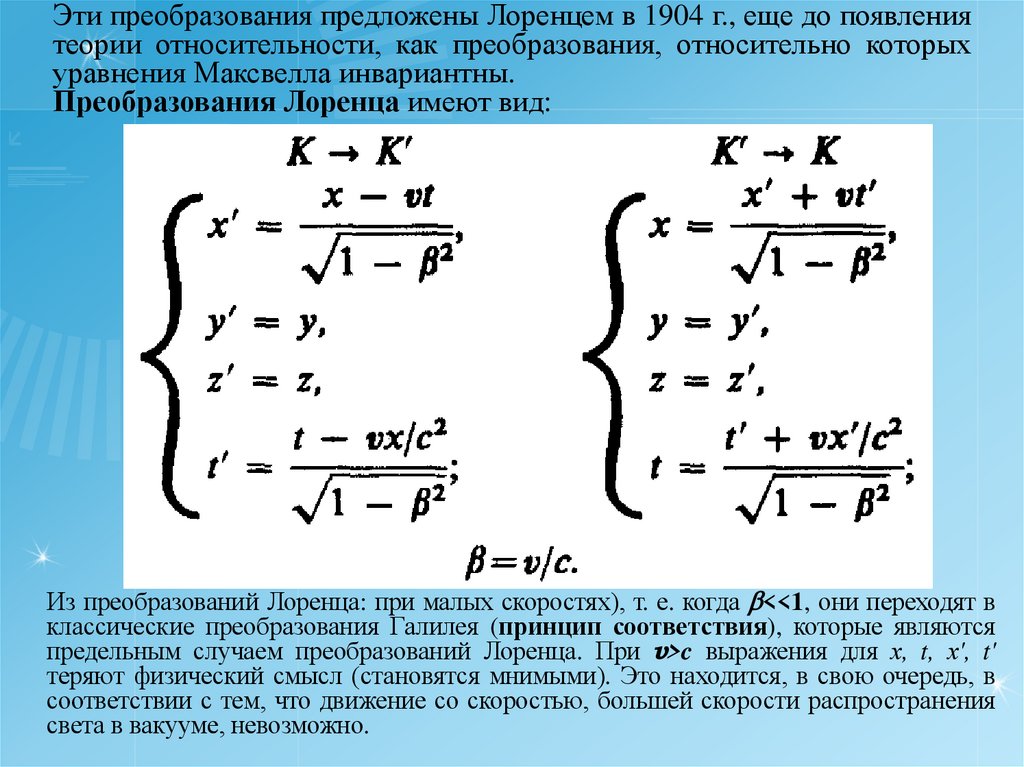 к преобразованиям Лоренца и, следовательно, удовлетворяет принципу