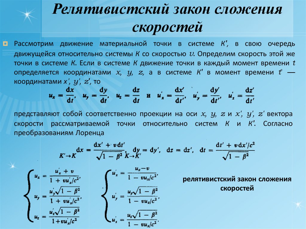 Основной вывод теории относительности сводится к тому, что пространство и время