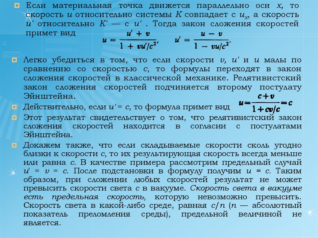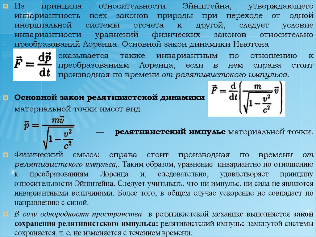 относительности Эйнштейна. Следует учитывать, что ни импульс, ни сила не являются