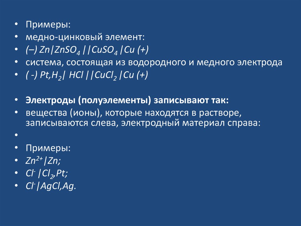 • Гальваническими или химическимиэлементами, называются э/х системы, в