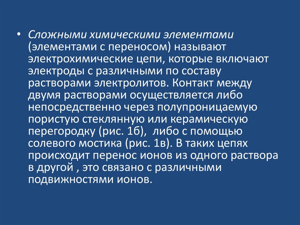 • Сложными химическими элементами(элементами с переносом) называют