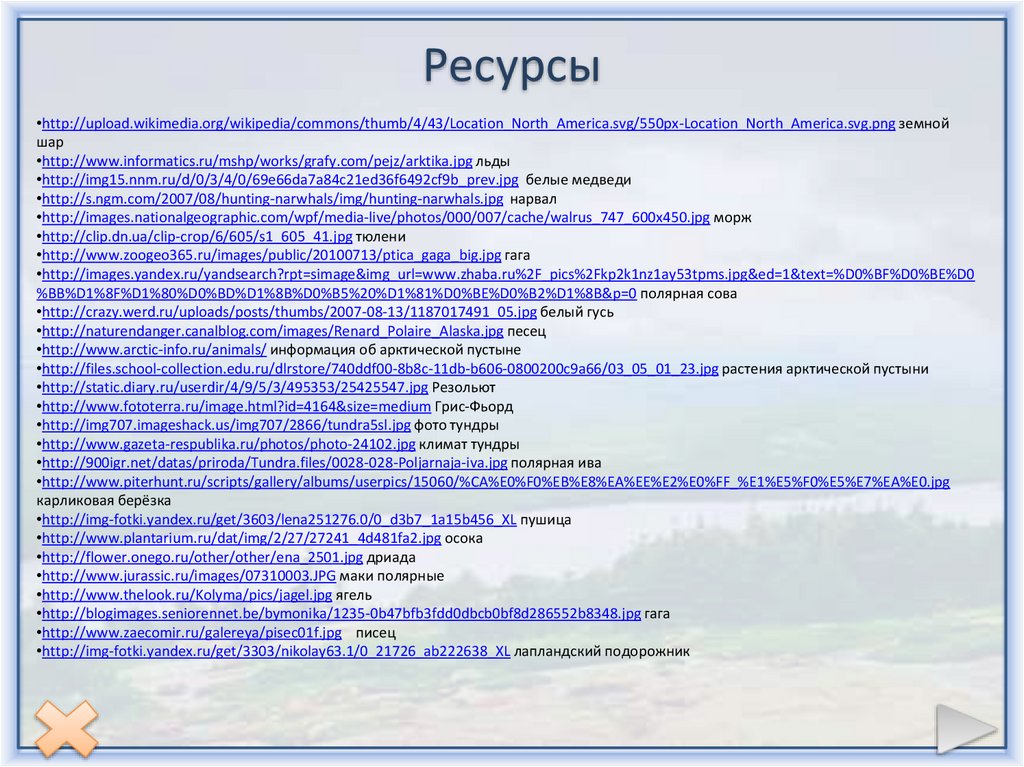 Ресурсы•http://metodisty.ru/m/videos/view/rasteniya_i_zhivotnye_tundry видео животные и растения тундра