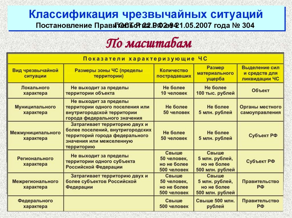 Классификация чрезвычайных ситуацийПостановление Правительства