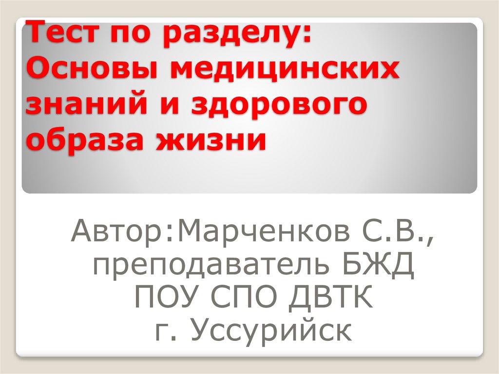 1. Тест по разделу: Основы медицинских знаний и здорового образа жизни