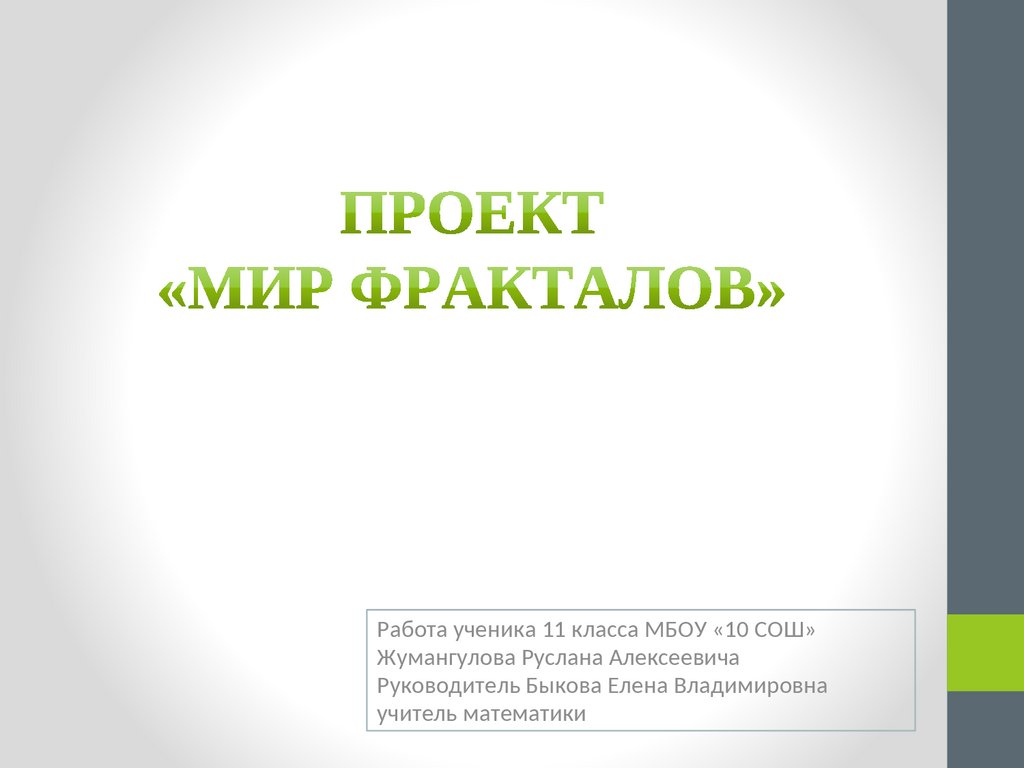 Работа ученика 11 класса МБОУ «10 СОШ»Жумангулова Руслана Алексеевича