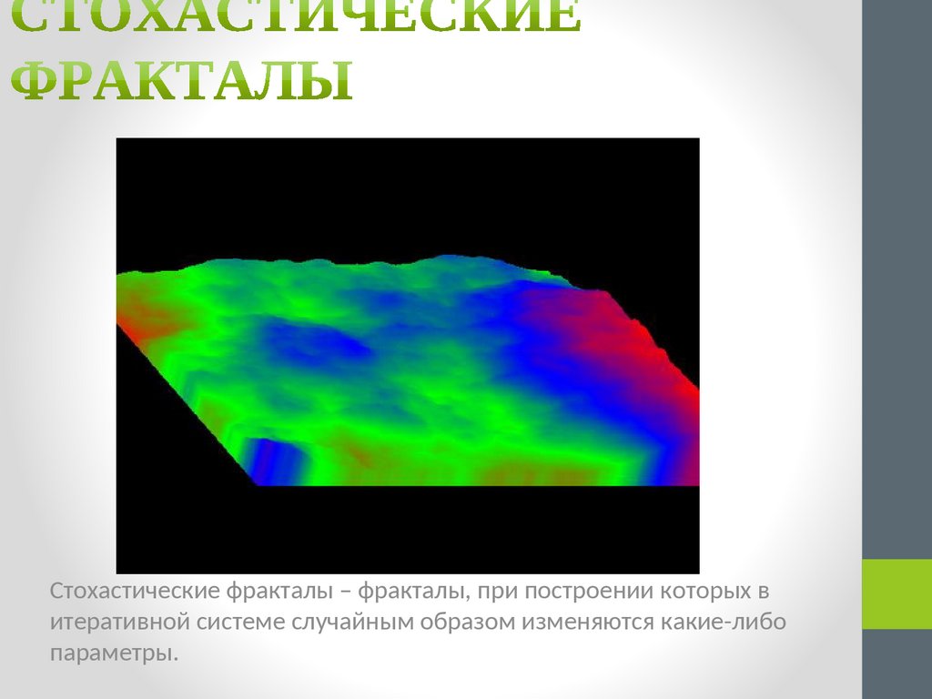 Стохастические фракталы – фракталы, при построении которых витеративной системе случайным образом изменяются какие-либо