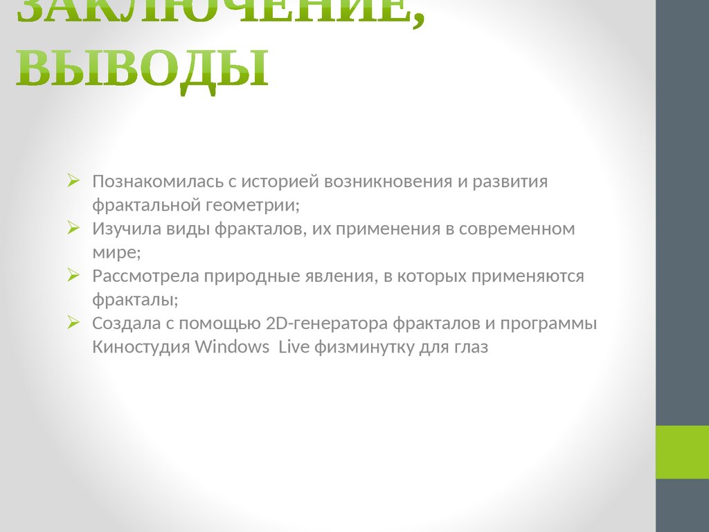 Изучила виды фракталов, их применения в современном