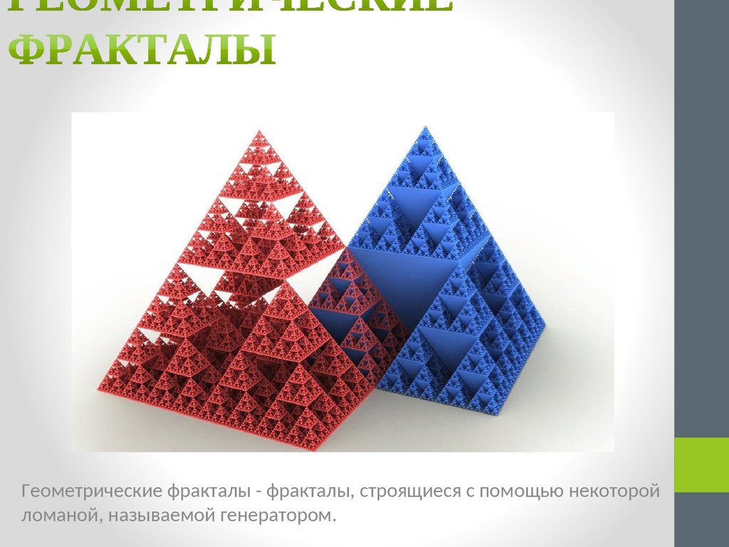 Геометрические фракталы - фракталы, строящиеся с помощью некоторойломаной, называемой генератором.