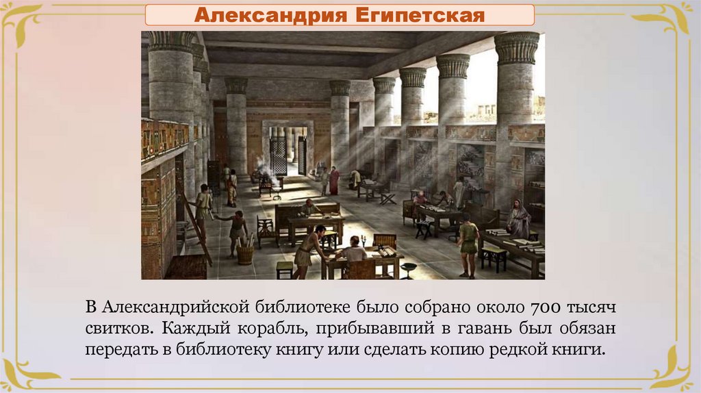 Александрия ЕгипетскаяВ Александрийской библиотеке было собрано около 700 тысяч