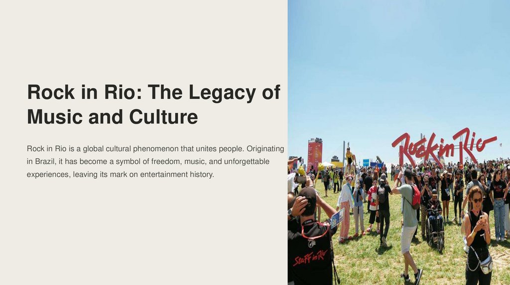 Rock in Rio is a global cultural phenomenon that unites people. Originating