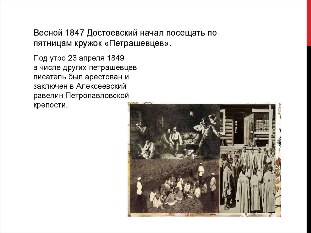 Весной 1847 Достоевский начал посещать попятницам кружок «Петрашевцев».
